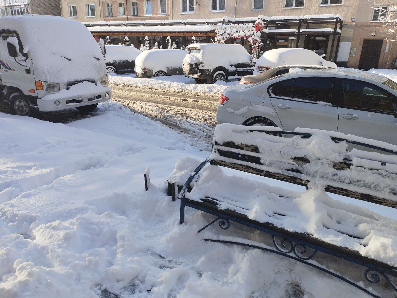 В Калининграде припаркованные машины мешают уборке снега
