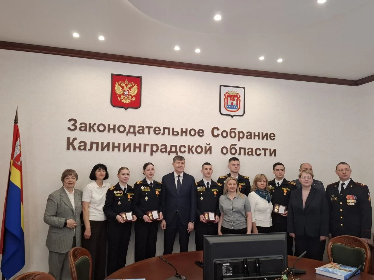 Сегодня в региональном парламенте чествовали настоящих героев нашего времени – воспитанников кадетских классов лицея № 17. Ребята встретились с Председателем Законодательного Собрания Калининградской области Андреем Кропоткиным. И получили в подарок книгу «Калининград. Россия». Представьте: шесть лет назад эти мальчишки и девчонки впервые надели кадетскую форму. За это время они не раз защищали честь лицея на городских состязаниях, а в этом году прогремели на всю страну: стали призёрами Суворовского конкурса в Москве. Ребята получили почётную медаль «За особые успехи в кадетском образовании». А 9 мая именно они – командир и знамённая группа – возглавят парадный расчёт на Параде Победы в Калининграде.